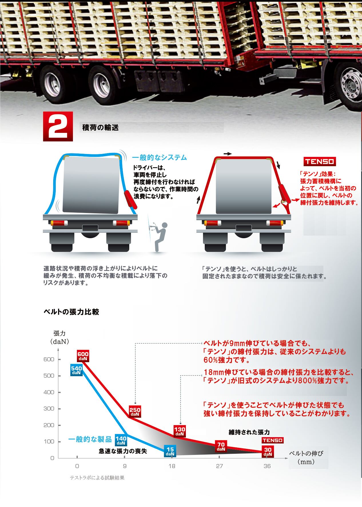 「テンソ」長距離輸送用ラチェットベルト 1m x 7m
